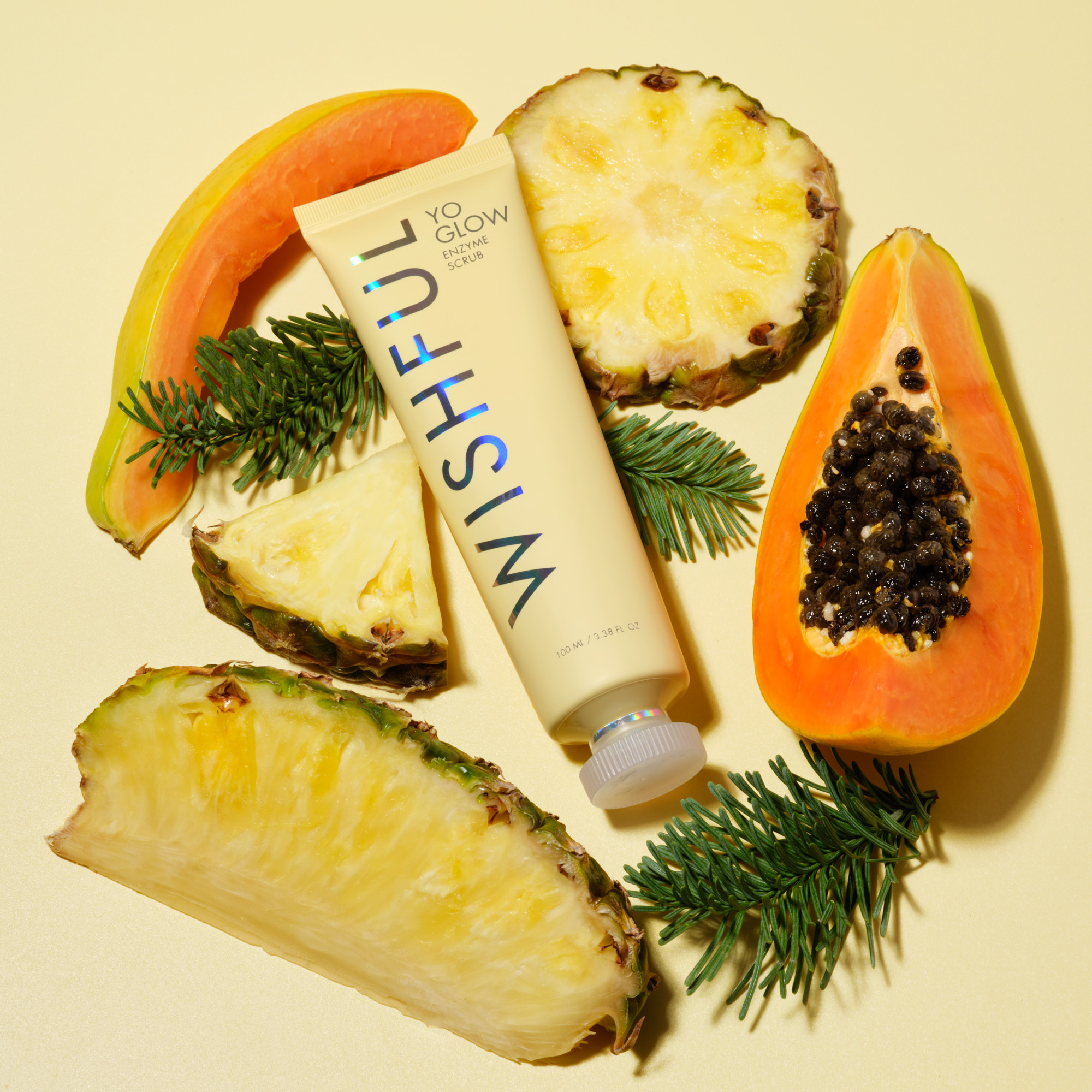 INGREDIENTS: WATER/AQUA/EAU, CELLULOSE, BUTYLENE GLYCOL, PROPYLENE GLYCOL, ALCOHOL, 1,2-HEXANEDIOL, BROMELAIN, ANANAS SATIVUS (PINEAPPLE) FRUIT EXTRACT, PAPAIN, CARICA PAPAYA (PAPAYA) FRUIT EXTRACT, CITRIC ACID, LACTIC ACID, MALIC ACID, SALICYLIC ACID, TARTARIC ACID, GLYCOLIC ACID, ZINGIBER OFFICINALE (GINGER) ROOT EXTRACT, GLYCERIN, ROSA CENTIFOLIA (ROSE) FLOWER EXTRACT, COCOS NUCIFERA (COCONUT) FRUIT EXTRACT, PRUNUS AMYGDALUS DULCIS (SWEET ALMOND) OIL, SALIX ALBA (WILLOW) BARK EXTRACT, SACCHARUM OFFICINARUM (SUGARCANE) EXTRACT/SACCHARUM OFFICINARUM/EXTRAIT DE CANNE À SUCRE, ACER SACCHARUM (SUGAR MAPLE) EXTRACT, CAMELLIA JAPONICA (CAMELLIA) LEAF EXTRACT, CITRUS PARADISI (GRAPEFRUIT) SEED EXTRACT, PHELLODENDRON AMURENSE (CORK TREE) BARK EXTRACT, MANNITOL, PSIDIUM GUAJAVA (GUAVA) LEAF EXTRACT, CAMELLIA SINENSIS (TEA PLANT) LEAF EXTRACT, MANGIFERA INDICA (MANGO) FRUIT EXTRACT, MUSA SAPIENTUM (BANANA) FRUIT EXTRACT, PASSIFLORA EDULIS (PASSIONFRUIT) FRUIT EXTRACT, CITRUS AURANTIUM DULCIS (ORANGE) FRUIT EXTRACT, CITRUS LIMON (LEMON) FRUIT EXTRACT, VACCINIUM MYRTILLUS (BLUEBERRY) FRUIT EXTRACT, MAGNOLIA OFFICINALIS (MAGNOLIA) BARK EXTRACT, SODIUM HYALURONATE, ETHYLHEXYLGLYCERIN, GLUCONOLACTONE, POLYSORBATE 20, CARBOMER, TROMETHAMINE, PROPANEDIOL, DISODIUM EDTA, PHENOXYETHANOL, BENZYL ALCOHOL, BENZYL SALICYLATE, FRAGRANCE/PARFUM. Please note, ingredient lists may change or vary from time to time. Please refer to the ingredient list on the product packaging you receive for the most up to date list of ingredients.